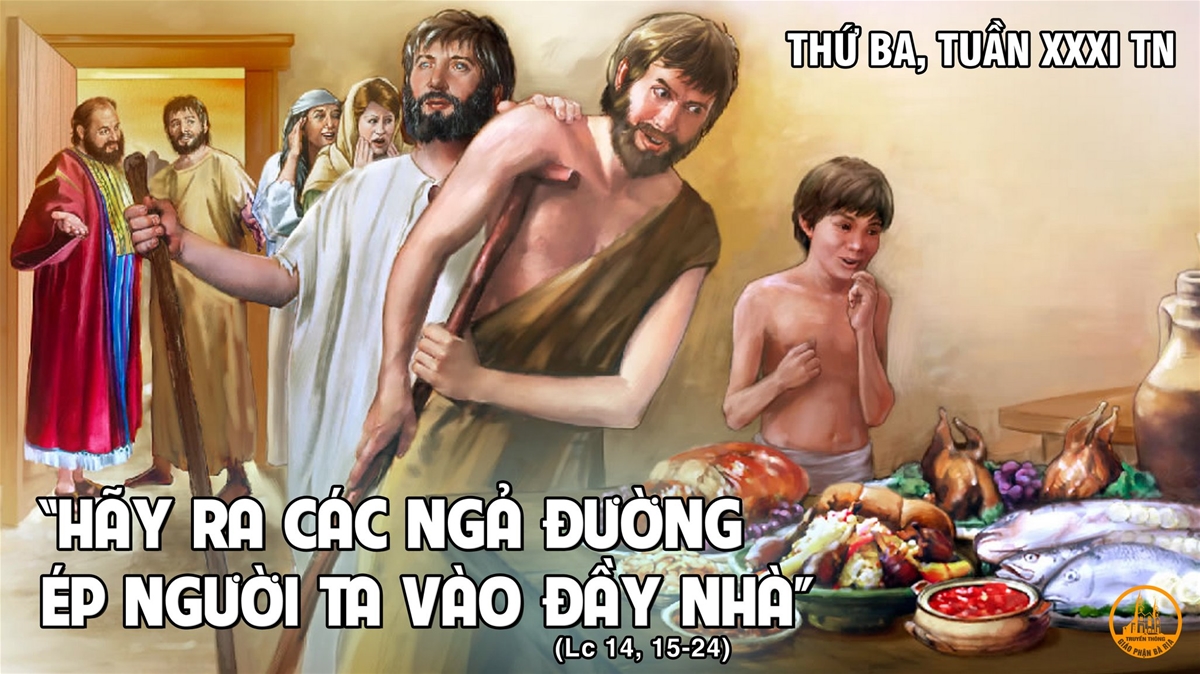 Đó là câu đầu tiên của bài Tin Mừng hôm nay. Vì thế, điều Chúa muốn dạy chúng ta, không phải là cách thức tổ chức hay cung cách ứng xử trong những bữa tiệc lớn, nhưng là giúp chúng ta hiểu và sống mầu nhiệm Nước Trời. Bởi vì, Nước Trời cũng giống như một bữa tiệc: “Một người kia làm tiệc lớn và đã mời nhiều người” (c.16).