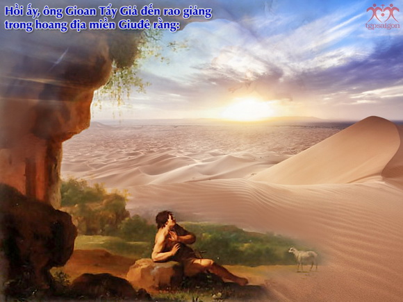 Đây là lời rao giảng của Gio-an Tẩy Giả trong hoang địa miền Giu-đê. Sứ mạng tiền hô cho Đấng Thiên Sai của Gio-an đã được ngôn sứ I-sai-a tuyên sấm như sau: “Có tiếng người hô trong hoang địa: hãy dọn sẵn con đường cho Đức Chúa, sửa lối cho thẳng để Người đi”. Ông mang dáng vẻ của ngôn sứ Ê-li-a ngày xưa qua việc mặc áo bằng lông lạc đà, thắt lưng bằng dây da thú, ăn châu chấu và uống mật ong rừng giống Ê-li-a.