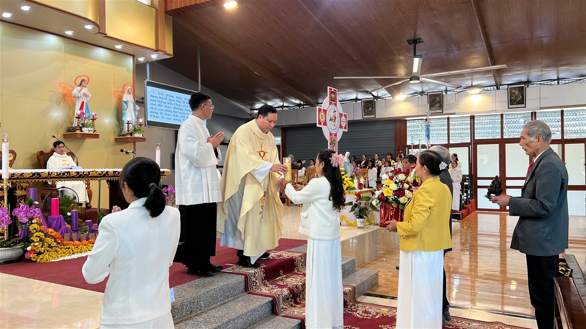 Mở đầu Thánh lễ, cha chủ tế Tôma.Aq mời gọi toàn thể cộng đoàn, đặc biệt là các hội viên Legio, hãy noi gương Đức Maria “vội vã lên đường” đem tình thương của Chúa đến với những người kém may mắn. Ngài nhấn mạnh rằng, người hội viên Legio Mariae không chỉ là những người đọc kinh, sinh hoạt đều đặn, nhưng còn là những cánh tay nối dài của Giáo Hội trong việc quan tâm, nâng đỡ, chia sẻ với những anh chị em nghèo đói, đau yếu, lầm lạc – những người đang cần được giúp đỡ qua sự hiện diện đầy tình người của mỗi hội viên.