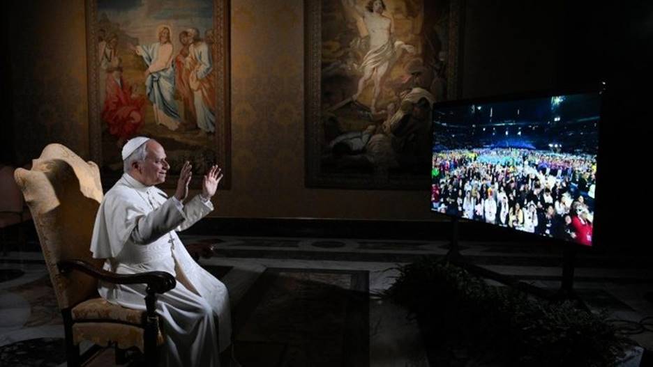 ĐTC Lêô XIV gặp gỡ online với hơn 15.000 tthanh hiếu niên Công giáo Mỹ (@Vatican Media)