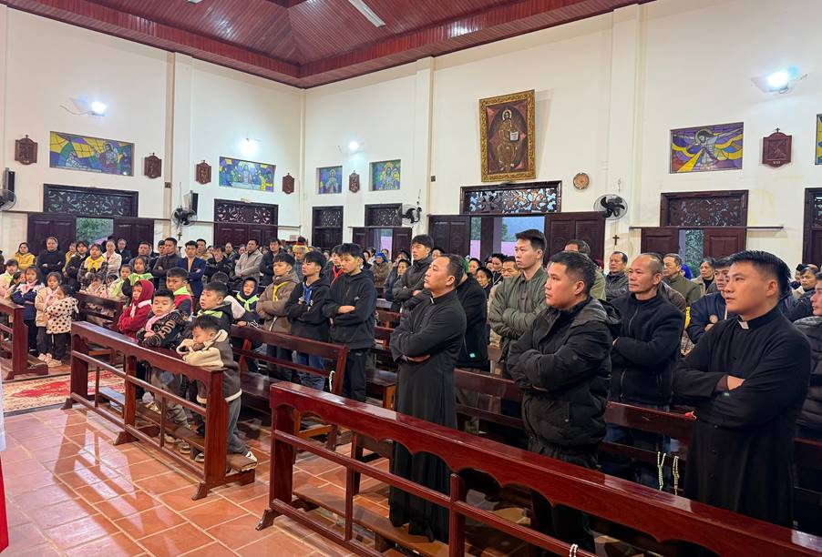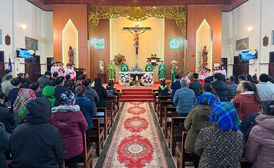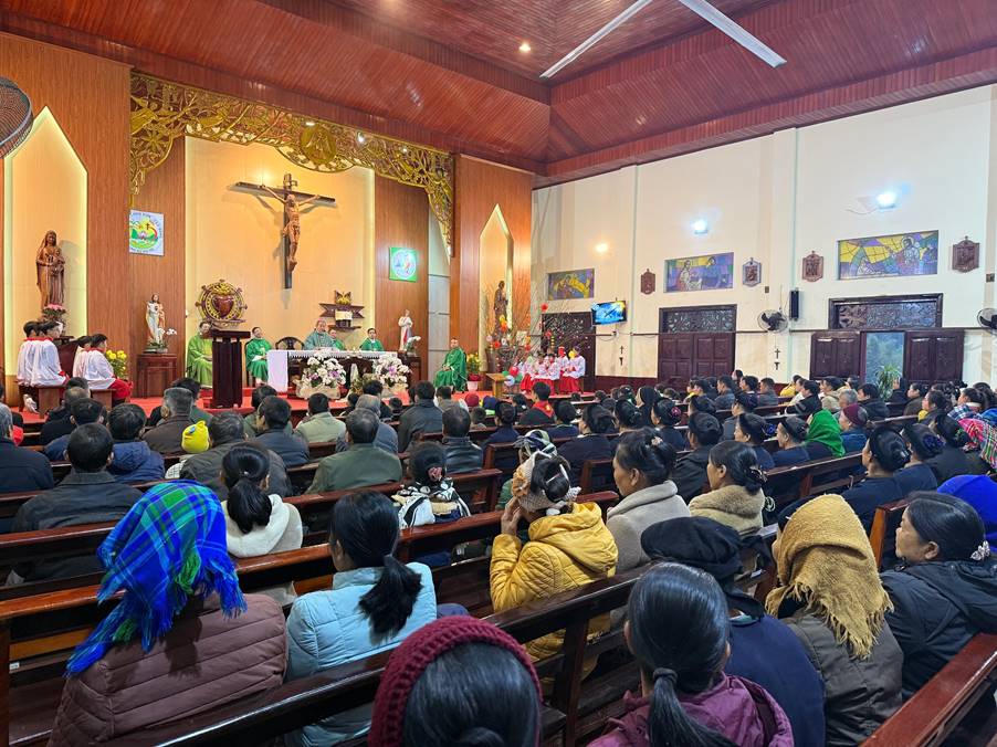Thánh lễ được cử hành trọng thể vào lúc 17g00 tại ngôi thánh đường giáo xứ. Đồng tế với Đức cha Giuse có cha xứ Bó Tờ Giuse Nguyễn Văn Vinh, quý cha đến từ giáo xứ Tà Lùng và Tòa Giám mục Lạng Sơn. Bầu khí phụng vụ diễn ra sốt sắng, trang nghiêm nơi ngôi thánh đường nhỏ bé nhưng ấm áp, quy tụ cộng đoàn dân Chúa trong tâm tình tạ ơn và hiệp thông.