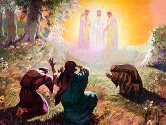 Khi ấy, Chúa Giêsu đưa Phêrô, Giacôbê và Gioan lên núi cầu nguyện. Và đang khi cầu nguyện, diện mạo Người biến đổi khác thường và áo Người trở nên trắng tinh sáng láng. Bỗng có hai vị đàm đạo với Người, đó là Môsê và Êlia, hiện đến uy nghi, và nói về sự chết của Người sẽ thực hiện tại Giêrusalem. Phêrô và hai bạn ông đang ngủ mê, chợt tỉnh dậy, thấy vinh quang của Chúa và hai vị đang đứng với Người. Lúc hai vị từ biệt Chúa, Phêrô thưa cùng Chúa Giêsu rằng: “Lạy Thầy, chúng con được ở đây thì tốt lắm; chúng con xin làm ba lều, một cho Thầy, một cho Môsê, và một cho Êlia”. Khi nói thế, Phêrô không rõ mình nói gì. Lúc ông còn đang nói, thì một đám mây bao phủ các Ngài và thấy các ngài biến vào trong đám mây, các môn đệ đều kinh hoàng. Bấy giờ từ đám mây có tiếng phán rằng: “Đây là Con Ta yêu dấu, các ngươi hãy nghe lời Người”. Và khi tiếng đang phán ra, thì chỉ thấy còn mình Chúa Giêsu. Suốt thời gian đó, các môn đệ giữ kín không nói với ai những điều mình đã chứng kiến.